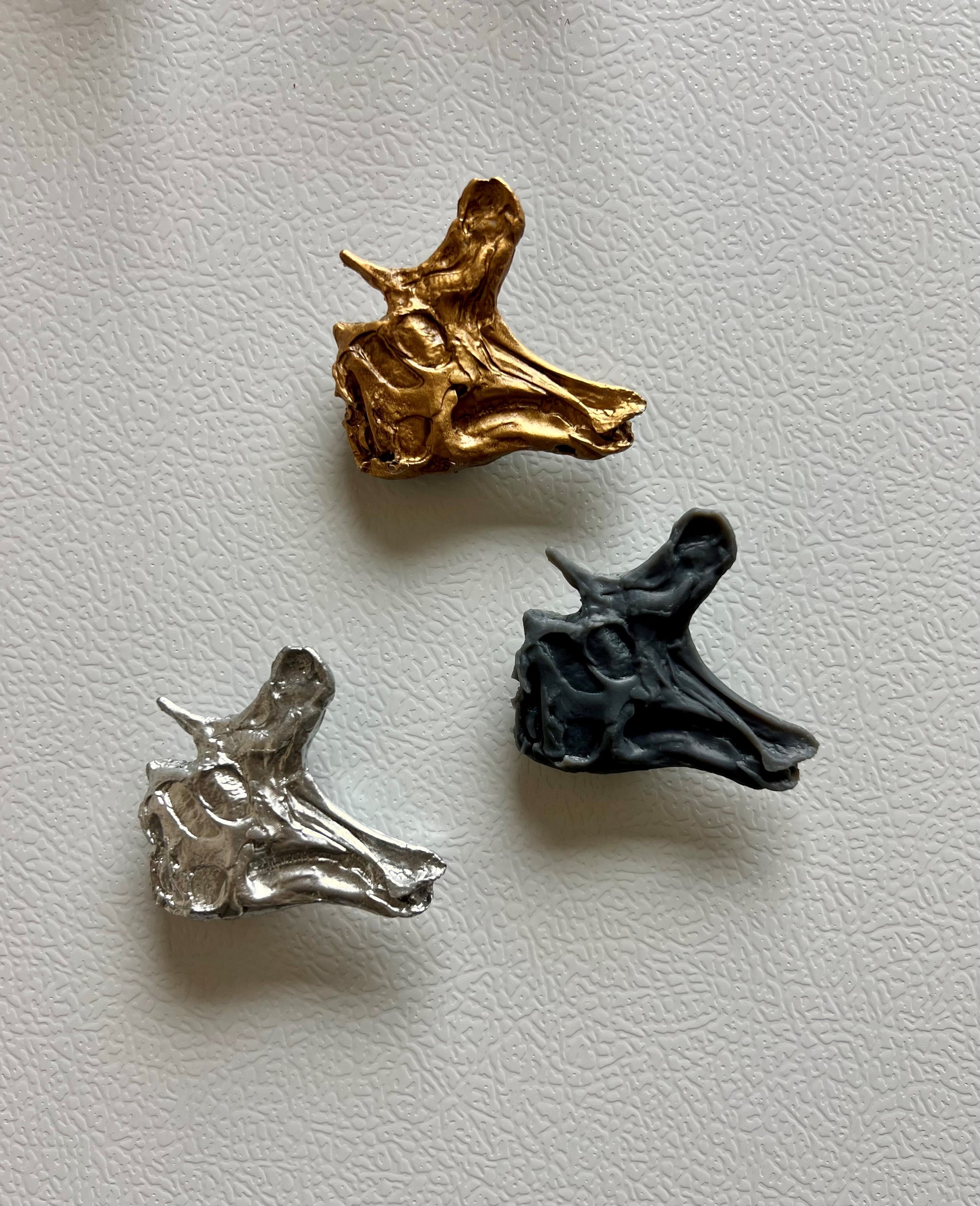 Skull magnet. Miniature replica created from a 3D scan of our real Lambeosaurus skull, the only Lambeosaurus collected from the United States. Length 2.5 inch (6cm)